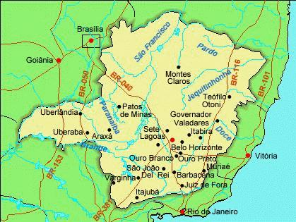 Mapa do estado de Minas Gerais.