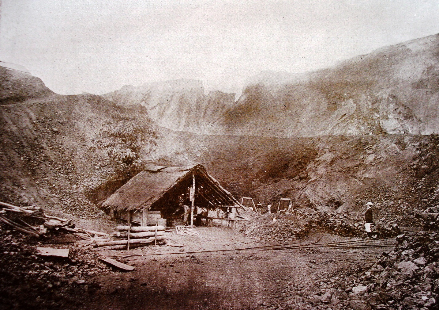 Parte central da jazida, mostrando os três planos de ataque. Revista Kosmos, 1907, fotografia sem atribuição de autor.