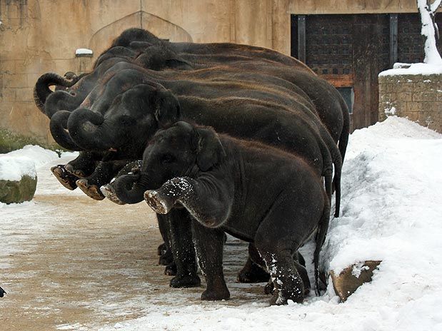 Um zoológico na Alemanha colocou cinco das suas elefantas em uma rotina diária de exercícios para ajudá-las a ter uma gravidez e um parto mais saudáveis. As cinco estão esperando filhotes para os meses que coincidem com a primavera e o verão do Hemisfério Norte e foram inseminadas pelo mesmo pai, o elefante Nikolai, que chegou ao Zoológico de Hannover há quase dois anos.