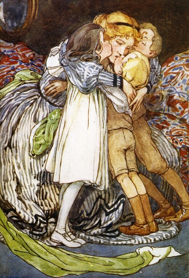 Ilustração anônima: mãe e filhos, 1900 do livro de histórias de Peter Pan.