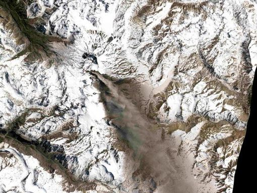 Imagem registrada por um satélite da Nasa – a agência espacial americana – no dia 21 e divulgada nesta segunda-feira mostra a erupção do vulcão Planchon-Peteroa, na fronteira de Chile e Argentina. A fotografia mostra uma nuvem escura de cinzas saindo da montanha que entrou em erupção no dia 6 – processo que se intensificou no dia 18. A maior parte das cinzas vai para o sudoeste da Argentina.