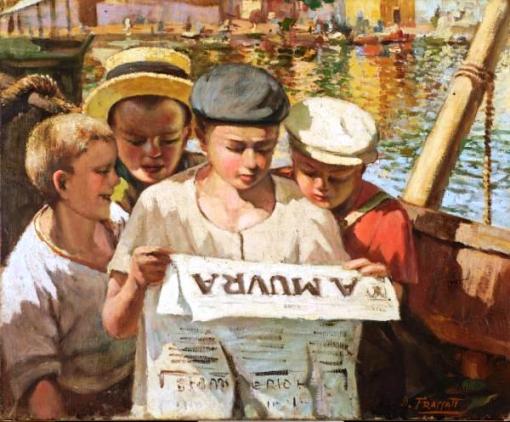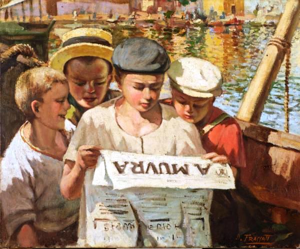 Quatro meninos pescadores no porto de Ajaccio lendo, 1936