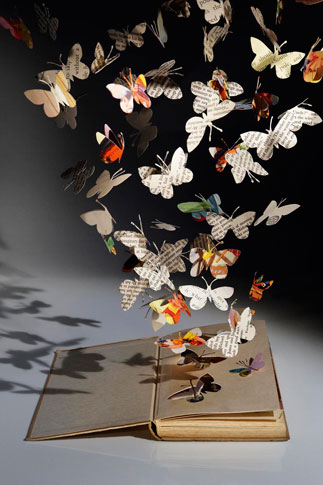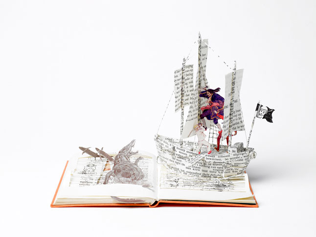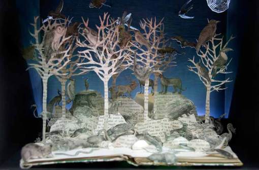 Sue Blackwell se diz inspirada sobretudo na arte oriental do origami. E seus trabalhos refletem um ambiente poético cuja delicadeza certamente remonta à sensibilidade oriental.