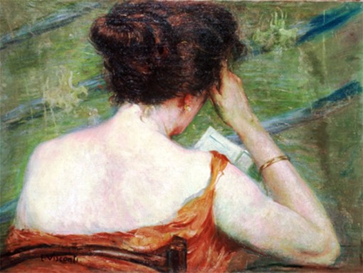 Eliseu D’Angelo Visconti (Salerno, Itália 1866 – Rio de Janeiro RJ 1944). Pintor, desenhista, professor. Vem com a família para o Rio de Janeiro, entre 1873 e 1875, e, em 1883, passa a estudar no Liceu de Artes e Ofícios, com Victor Meirelles (1832 – 1903) e Estêvão Silva (ca.1844 – 1891). No ano seguinte, sem deixar o Liceu, ingressa na Academia Imperial de Belas Artes – Aiba, tendo como professores Zeferino da Costa (1840 – 1915), Rodolfo Amoedo (1857 – 1941), Henrique Bernardelli (1858 – 1936), Victor Meirelles e José Maria de Medeiros (1849 – 1925). Em 1888, abandona a Aiba para integrar o Ateliê Livre, que tem por objetivo atualizar o ensino tradicional. Com as mudanças ocorridas com a Proclamação da República, a Aiba transforma-se na Escola Nacional de Belas Artes – Enba. Visconti volta a freqüentá-la e recebe, em 1892, o prêmio de viagem ao exterior. Vai à Paris e ingressa na [i]École Nationale et Spéciale[/i] des Beaux-Arts [Escola Nacional e Especial de Belas Artes]; cursa arte decorativa na [i]École Guérin[/i], com Eugène Samuel Grasset (ca.1841 – 1917), um dos introdutores do Art Nouveau na França. Viaja à Madri, onde realiza cópias de Diego Velázquez (1599 – 1660), no Museo del Prado [Museu do Prado], e à Itália, onde estuda a pintura florentina. Em 1900, regressa ao Brasil e, no ano seguinte, expõe pela primeira vez na Enba. Executa o ex-libris para a Biblioteca Nacional, no Rio de Janeiro, e vence o concurso para selos postais e cartas-bilhetes, em 1904. Em 1905 é convidado pelo prefeito da cidade, engenheiro Pereira Passos, para realizar painéis para a decoração do Theatro Municipal do Rio de Janeiro. Entre 1908 e 1913, é professor de pintura na Enba, cargo a que renuncia por descontentamento com as normas do ensino. Retorna à Europa para realizar também, entre 1913 e 1916, a decoração do foyer do Theatro Municipal do Rio de Janeiro e só se fixa definitivamente no Brasil em 1920. Segundo alguns estudiosos, é considerado um praticante do Art Nouveau e do desenho industrial e gráfico no Brasil, com obras em cerâmica, tecidos e luminárias.