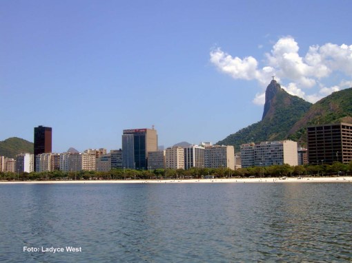 Cristo Redentor, visto da Enseada de Botafogo, com a praia de Botafogo na linha do horizonte, 2007.