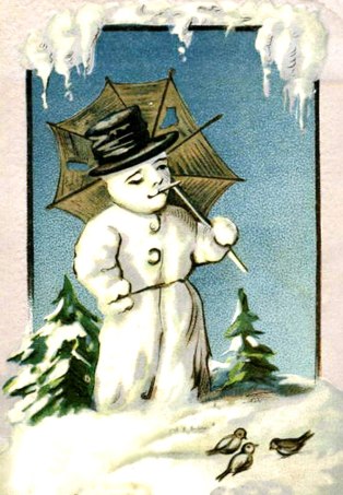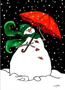 Homens de neve, ou bonecos de neve parecem ter também muita necessidade de guarda-chuvas. Mas com eles, acredito que a minha teoria inicial sobre a necessidade de se ter cores contrastantes prova ser correta. Vejamos.