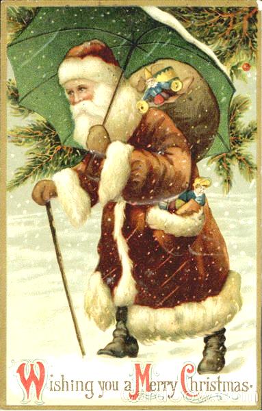 Tudo indica que Papai Noel é um homem vaidoso que mudou muito de roupas através das décadas e que entre seus accessórios temos o guarda-chuva. Ele tem guarda-chuvas de muitas cores. E esse accessório o acompanha até hoje.
