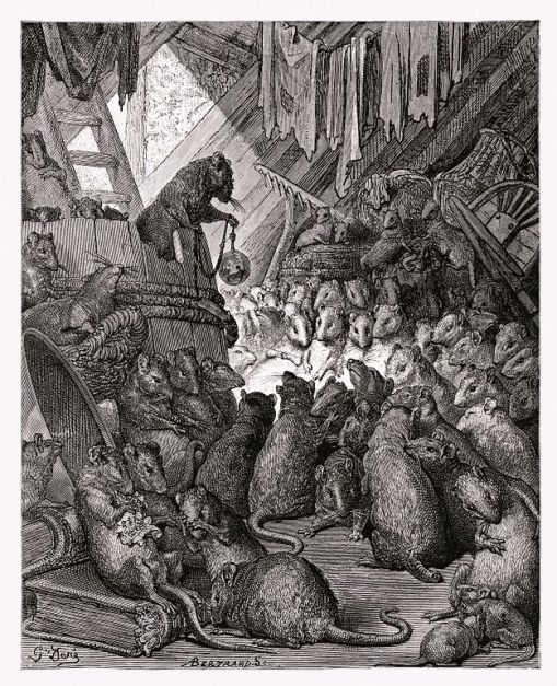 A assembléia de ratos, ilustração de Gustave Doré.