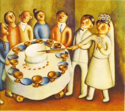 Voltemos ao jantar de que tratávamos. Após o brinde no noivo, seguiram-se outros, todos breves. Como já disse, creio que por um tácito acordo exigido pelos estômagos, nenhum dos convivas se estendia muito nas saúdes ao princípio do jantar. Depois, levantaram-se todos para ser arranjada a mesa dos doces. A este arranjo, presidiu Sinfronia, auxiliada pelas outras senhoras. O Lisboa tinha parentas num convento. Nessas casa religiosas é que eram confeccionados os melhores doces, apreciados não só pelo sabor como pela beleza dos enfeites – ramos de flores e frutos de alcorce e papel, trabalhos na verdade delicadíssimos. Sinfronia recebia presentes que lhe serviam de modela, pedia receita e, muito curiosa, como então se dizia, tornou-se perita nesses trabalhos, o que lhe valia elogios do seguinte teor: “nos conventos não se faz melhor!” A mesa, muito larga, ficou repleta. Seu aspecto vistoso e florido muito agradou a todos segundo os comentários que ouvi.