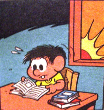 Chico Bento estuda na última hora antes da prova, ilustração Maurício de Sousa.