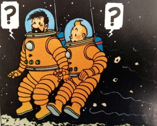 Tintin no espaço, ilustração Hergé.
