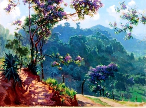 Perto do pequeno lago em que se debruçavam as pereiras alvas, encantadas, o pintor armou o cavalete. Tocados de primavera, os galhos roçavam a água que reproduzia a fila das árvores. Amarrada à margem a pequena canoa envernizada, vazia, estava juncada de flores que o vento carregara.”