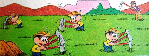 Chico Bento prepara a terra para plantar, ilustração Maurício Sousa.