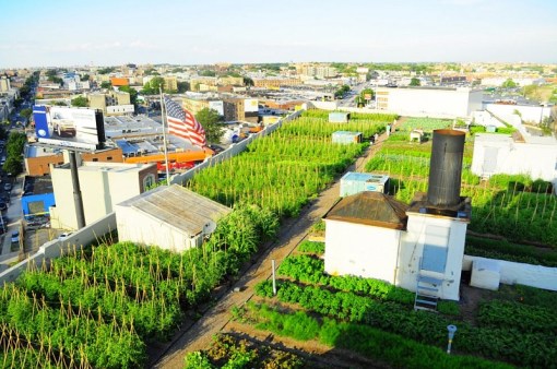 Em março deste ano uma fazenda de 11.100 m² começou a ser construída no último piso de um edifício no burgo de Brooklyn, na cidade de Nova York: Sunset Brooklyn Park. Essa será a maior fazenda suspensa – no telhado – do mundo. Trata-se de uma estufa hidropônica, projeto das companhias Bright Farms, e Salmar Properties L.L.C. Os planos são para a produção de 500.000 quilos de produtos locais por ano: tomates, alfaces, ervas e condimentos.