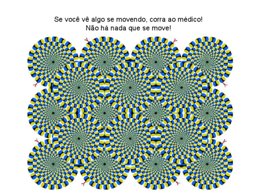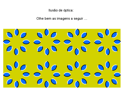 Recebi esta semana um email com diversas imagens que nos dão ilusão de ótica. Já tratamos desse assunto aqui. E uma delas usamos como ilustração do poema Romance ingênuo de duas linhas paralelas, de José Fanha. Incentivo todos a conhecerem esse delicioso poema clicando no link. Mas a versão que usamos naquela postagem de 2009 não é colorida. Hoje postarei em seguida as imagens que recebi. Infelizmente elas vieram sem autoria, de modo que não posso passar para vocês o autor da coletânea, mas pela maneira de escrever deve ser português. Divirtam-se.