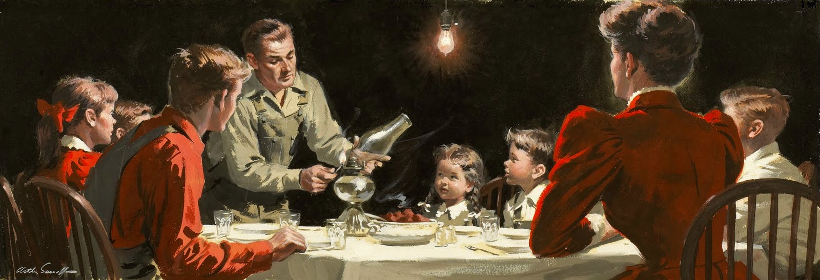 Jantar em família, ilustração de Arthur Sarnoff.