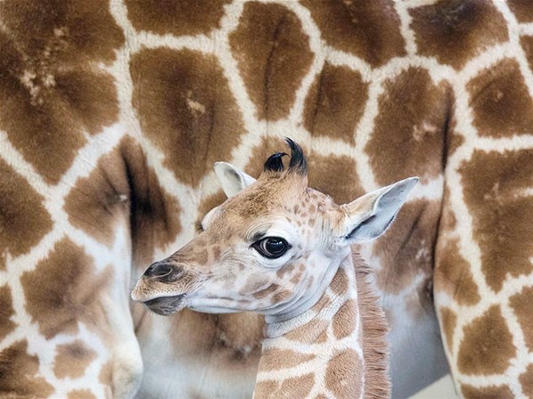 A pequena girafa Sandy Hope aparece aqui ao lado de sua mamãe, no lugar onde mora: Jardim Zoológico de Greenwich, no estado de Connecticut, nos Estados Unidos.