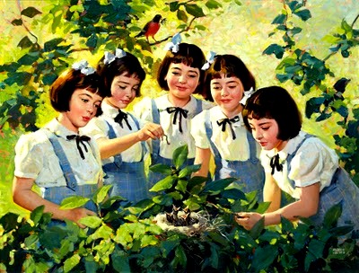 Passarinho no ninho, ilustração de Andrew Loomis. [Dionne quintupletos]