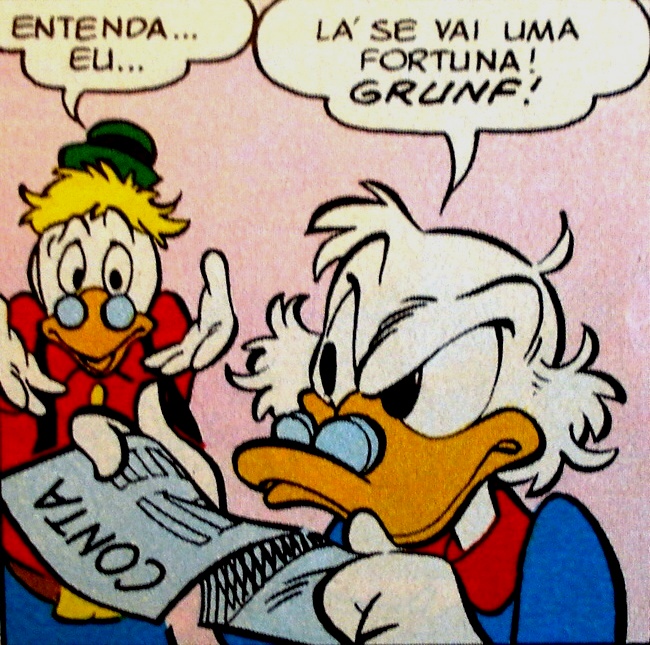 Tio Patinhas desconfia das contas a pagar. Ilustração de Walt Disney.