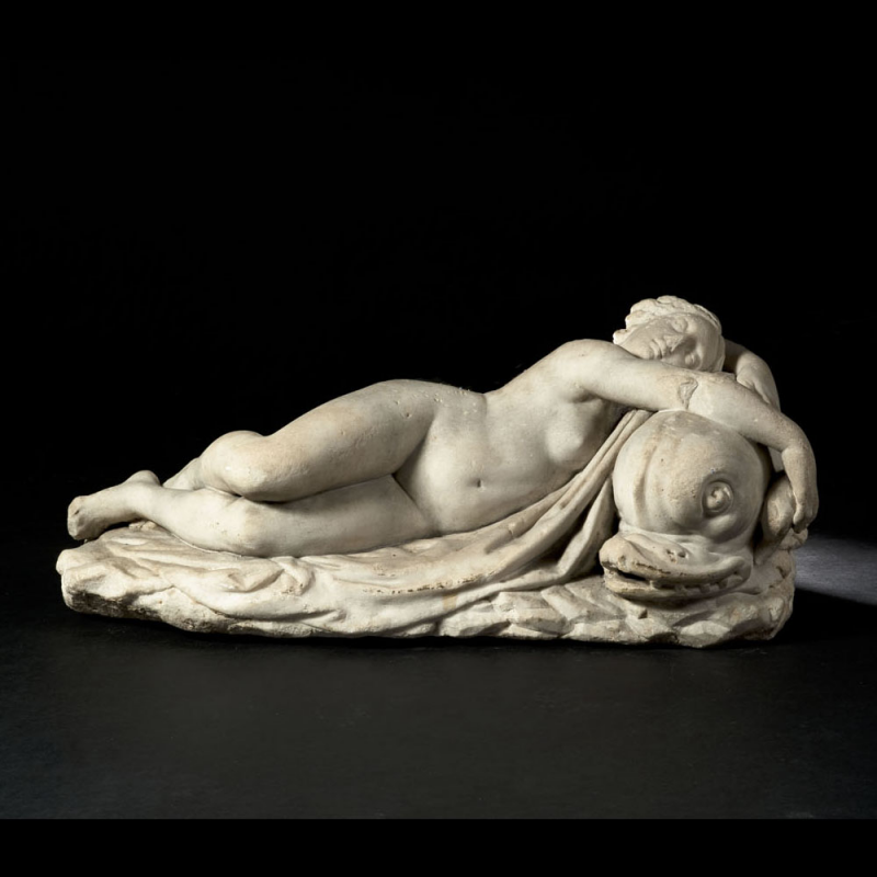 Anfitrite era a esposa de Poseidon (Grécia) ou Netuno (Roma), assim tornou-se a Deusa dos Mares. Isso explica o golfinho servindo de travesseiro para a deusa adormecida.