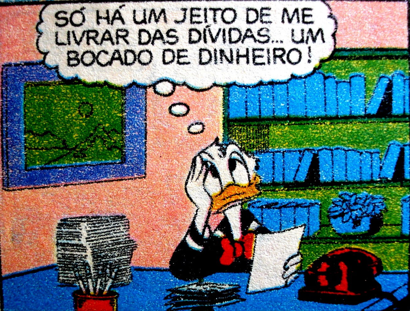 Pato Donald tem dívidas, ilustração de Walt Disney.
