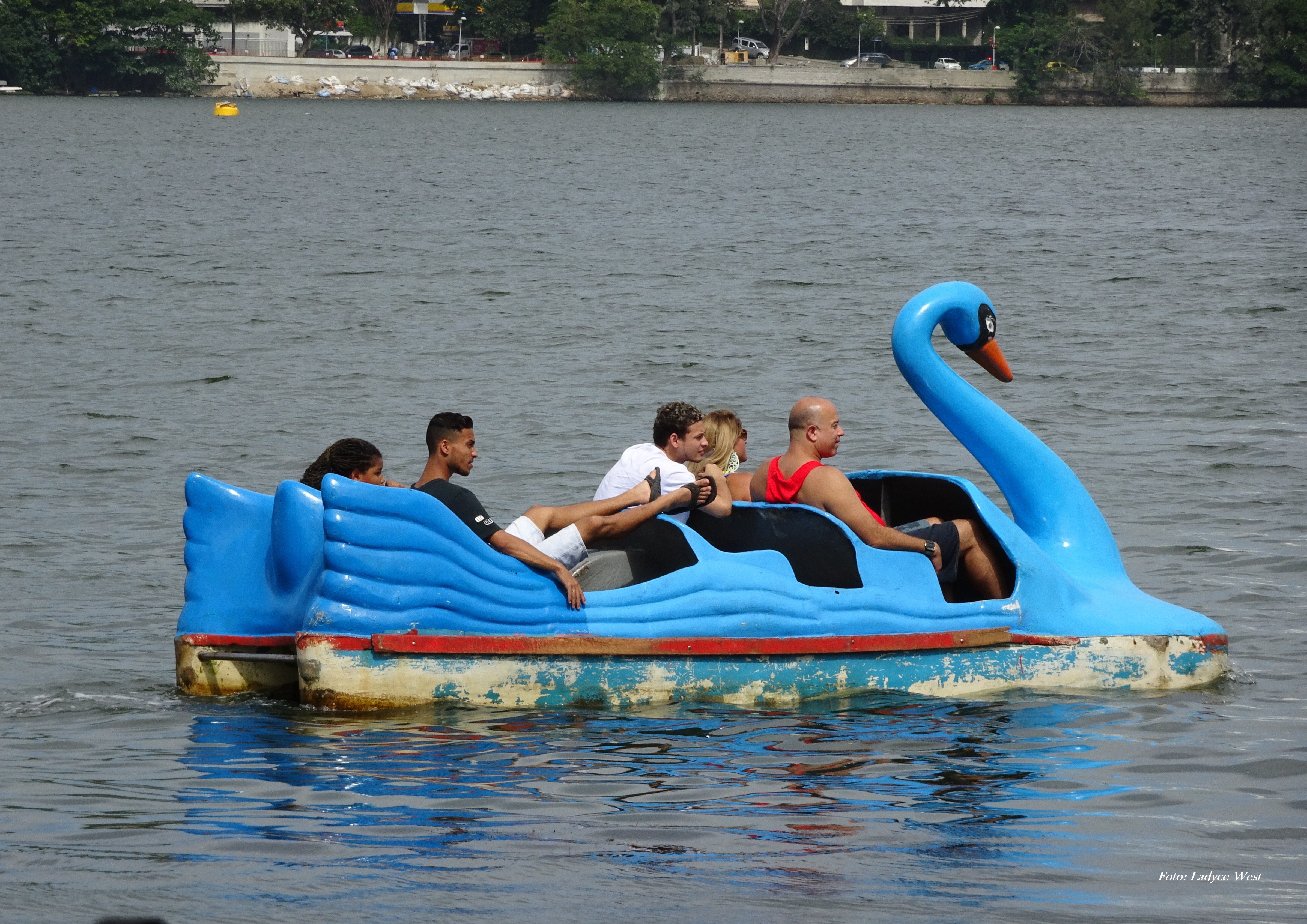 Cisne azul, diversão de feriado na Lagoa Rodrigo de Freitas, Rio de Janeiro.