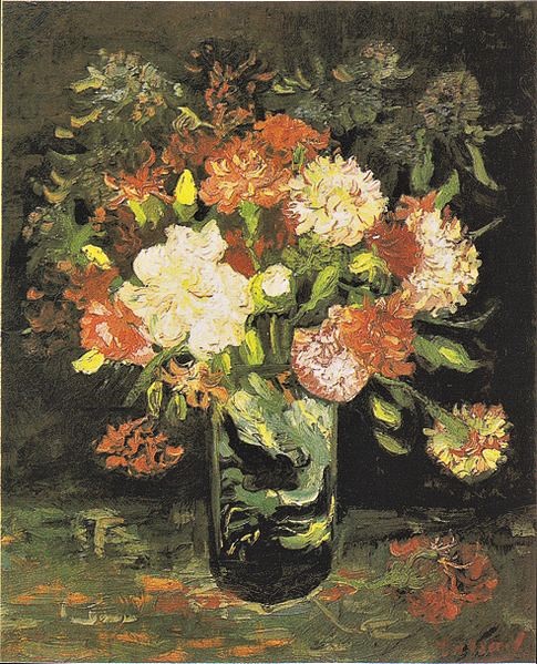 Vaso com palmas de Santa Rita, rosas e lilases, 1886
