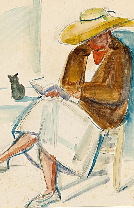Senhora lendo com gato, 1920