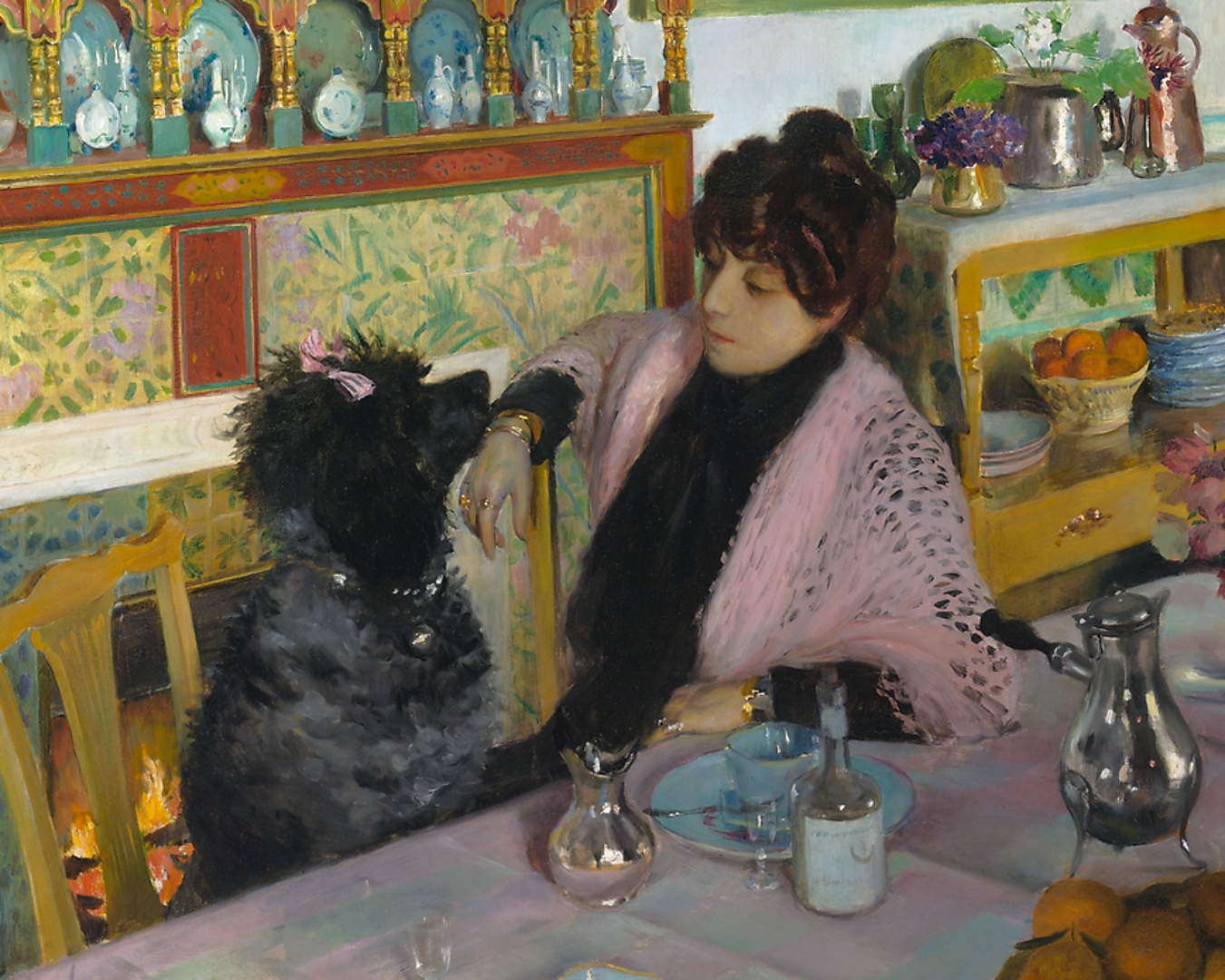 Marie Rochegrosse na sala de jantar em Djenan Merien, 1904