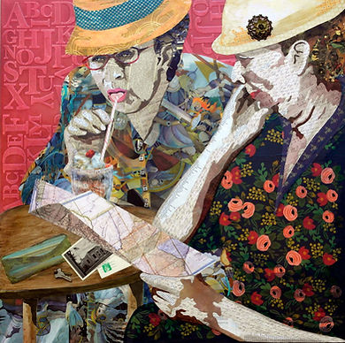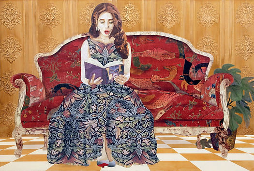 técnica mista com colagem, paginas de livros, objetos achados, acrílica sobre painel de madeira, 121 x 182 cm