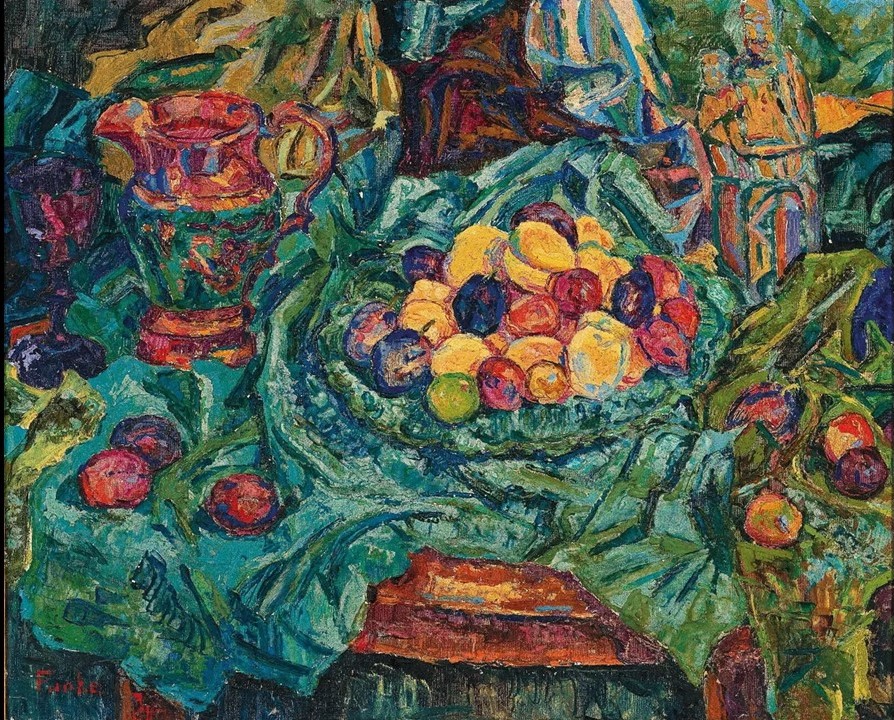 Natureza morta com frutas, jarra e pequena escultura, c. 1925
