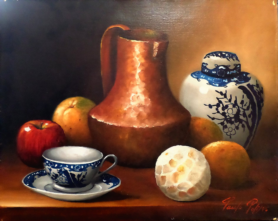 Natureza morta com goiaba, pão, maçã, filtro e caneca, 2014