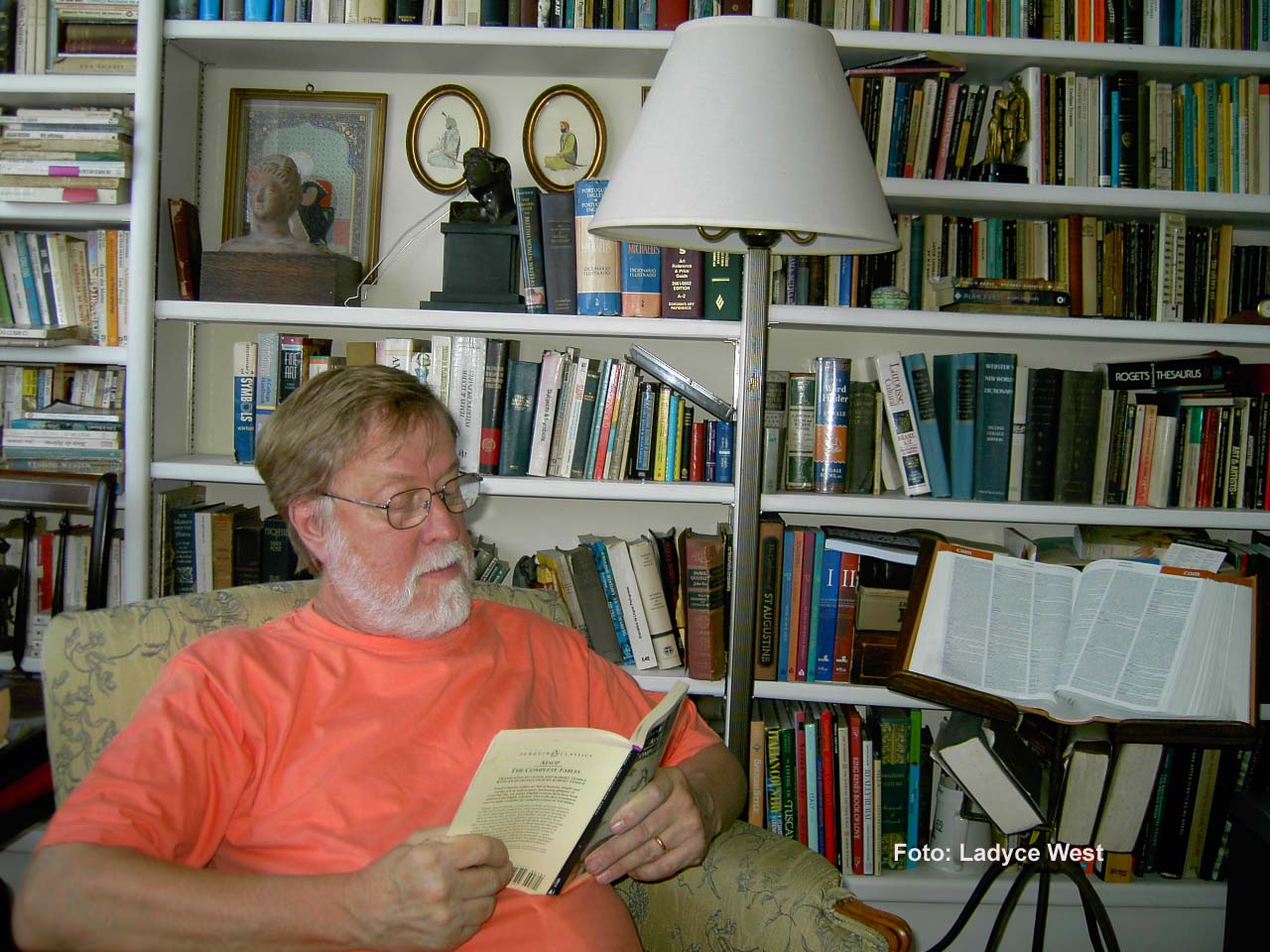 Nossa biblioteca era vasta porque apesar de trabalharmos nas humanidades, havia poucos pontos em comum nas nossas áreas de interesse. Havia poucas duplicatas. Exceto, e foi assim que nos apaixonamos, quando comparávamos notas: eu trabalhando com Freud e outros da psicologia, porque minha especialidade era a arte surrealista e Harry se dedicando aos pós-Junguianos na interpretação dos grandes escritores americanos do século XIX: Hawthorne, Poe, Emerson, Melville, Whitman e Throreau. Ele aprendeu sobre as artes plásticas comigo e passou a visitar museus com outros olhos. Tivemos também a sorte de viajar muito, e residir em alguns diferentes países. Desta ligação, eu saí ganhando, porque ele me educou nos textos clássicos gregos e romanos, assim como nos filósofos da renascença. Por sua causa devorei Edgar Alan Poe, Nathaniel Hawthorne e meu favorito entre esses, Emerson e seus ensaios. Mas além da primeira geração de clássicos americanos, também me familiarizei com Emily Dickinson, Henry James, Stephen Crane, Kate Chopin e outros. Nessa troca, ganhei mais, porque a literatura havia sempre sido um interesse meu, afinal de contas comecei meus estudos em letras, em francês. E Harry só se interessou pelas artes visuais depois de nos conhecermos. Mas fizemos uma boa dupla que se entendeu e se completou. Fico, portanto, ainda com muitos de seus livros ‘primários’, aqueles que têm sua letra cobrindo páginas, e sublinhados com pontos de interrogação ou menção do caminho para levar adiante. Quanto a seus manuscritos ainda não tive coragem de deixá-los ir. Mas estou abrindo espaço nas prateleiras. Ainda leio muito, ainda leio em papel. Ultimamente compro a versão digital e se gosto do livro, compro o mesmo livro em papel. Caminho para uma vida mais leve.