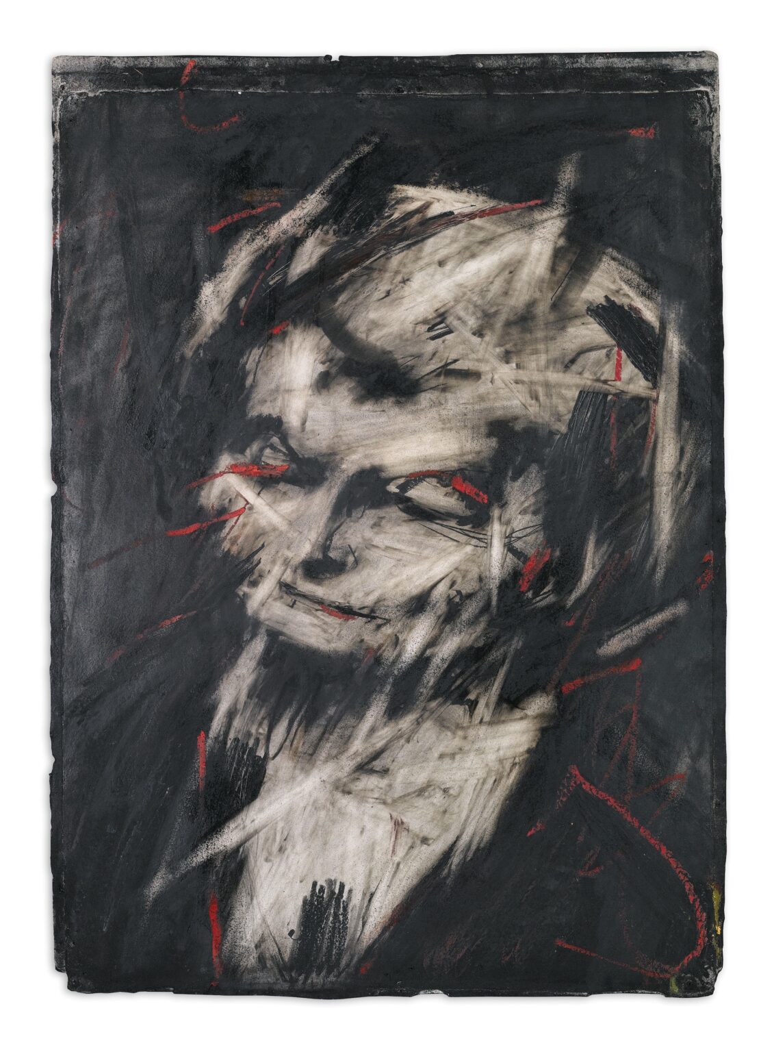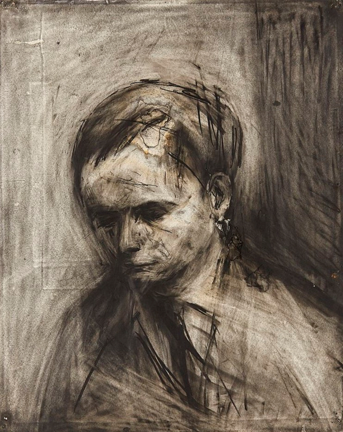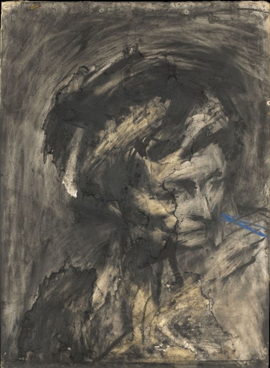 O que faz esses desenhos a carvão tão excepcionais? A profundidade das camadas. Auerbach trabalhava com camada em cima de camada de carvão e giz, apagava e voltava a trabalhar de novo. E mais uma vez. E ainda mais uma. Apagou em alguns casos tantas vezes, que chegou a furar o papel e ser forçado a remendar por trás.