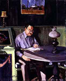 Homem lendo à luz de lampião