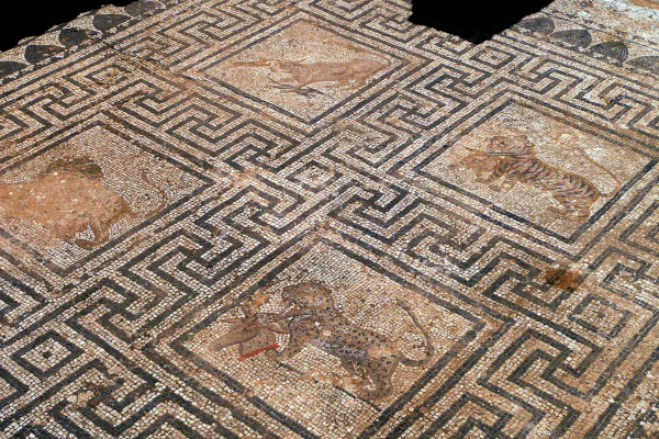 Eu achava muito romântico vê-la partir com pouquíssima bagagem, no início do verão, e voltar muitas semanas depois, com um deslumbrante tom acobreado na pele, graças ao sol do oriente médio, que ressaltava seus olhos azuis enormes. Chegava cheia de histórias de aventuras e novas descobertas nos pisos de sinagogas que escavava. Tornamo-nos muito amigas com alguns anos de convivência, só para deixarmos nosso convívio diário quando ela estava próxima a se casar com um promotor público em Washington DC. Fui, junto a outras amigas, sua “dame of honor“. Através desses anos de vida em comum aprendi muita coisa sobre mosaicos, variações de épocas em que foram feitos, o que observar neles, etc.