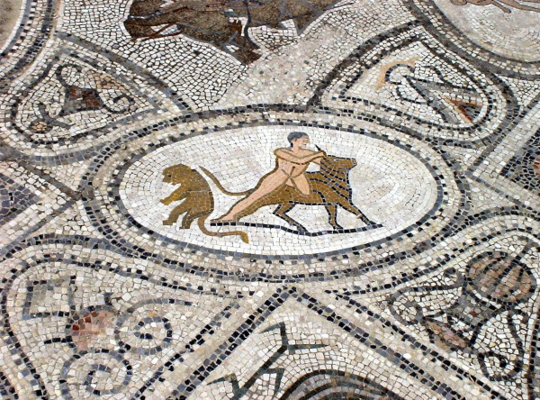 Por causa desse convívio acabei tendo persistente curiosidade sobre mosaicos antigos. E sempre que possível, se houvesse um local com ruínas da antiguidade grega ou romana, próximo ao local onde me encontrava viajando, fiz questão de visitá-lo, quer eu estivesse em Portugal ou na Grécia. Quando morei em Oran, na Argélia, um dos passeios mais deslumbrantes que fiz foi às ruinas de Tipasa, conhecidas na literatura pelo romance de Albert Camus, Bodas em Tipasa. Nesse mesmo período viajamos mais de uma vez pelo Marrocos, mas eu nunca soube de Volubilis. Portanto, quando por acaso, como acontece na internet, caí numa série de artigos com profusão de fotografias sobre esse sítio. Passo algumas fotos aqui porque achei os mosaicos de excelente qualidade.
