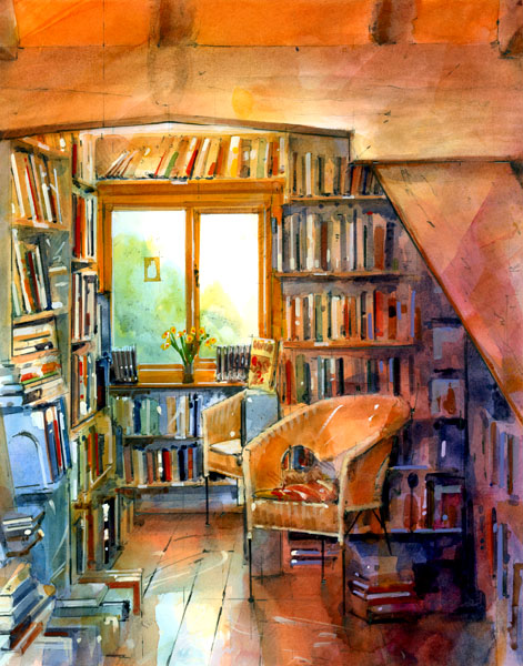 Livraria, ilustração de John Walsom (Inglaterra, 1956)