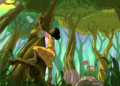 Ilustração, Brian Wambi do livro The Kando Forest Disaster.