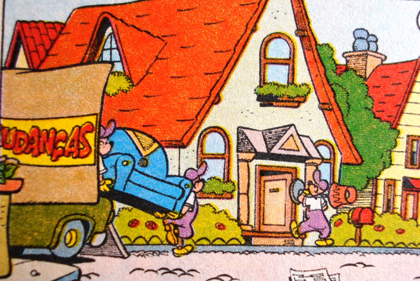 Caminhão de mudanças em Patópolis, ilustração de Walt Disney Co.