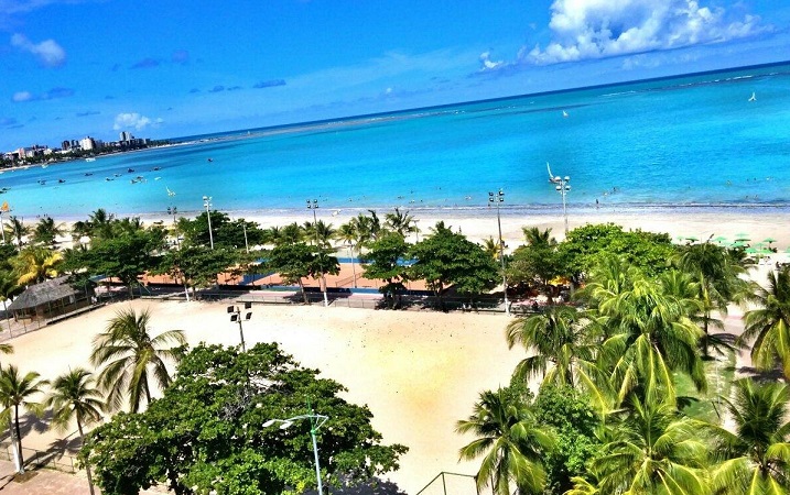 Nota: Sempre verifico esses quadros que identificam um lugar. Em geral consigo ver algum aspecto que permaneceu o mesmo, ou semelhante para ter certeza de que o lugar existe. Alguns são difíceis de reconhecer. Essa praia é uma delas. 85 anos depois não há nada, nem mesmo os cactos da pintura de Gutmann Bicho foram utilizados no paisagismo e as palmeiras definitivamente de outra espécie intercaladas, hoje, com amendoeiras.