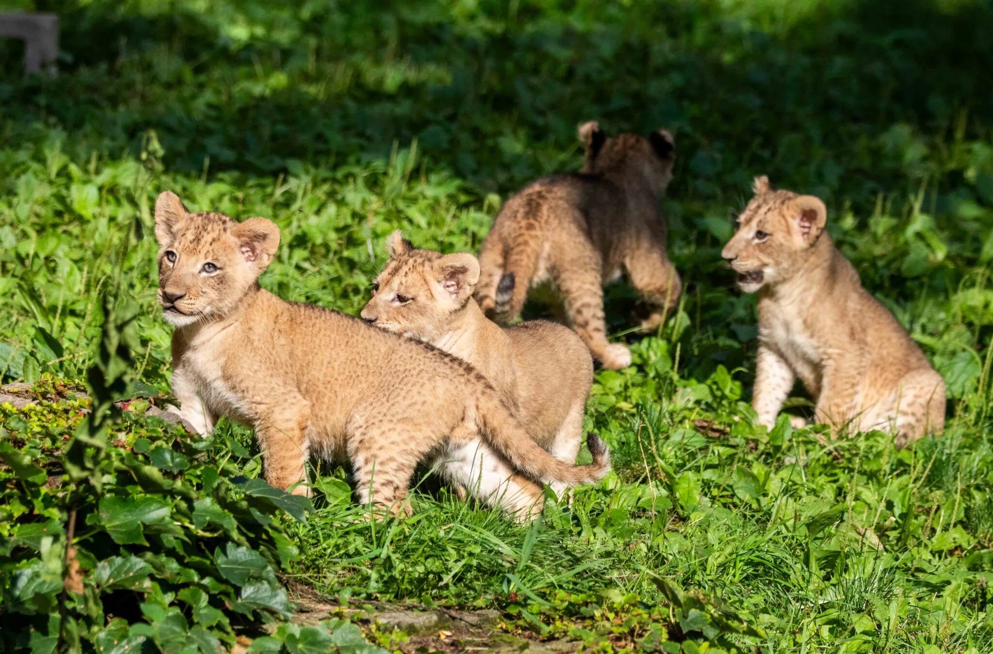Quatro filhotes de leão, 2 meninas e dois meninos, nasceram em 2023 no Zoológico da cidade de Buffalo, NY, rebentos do casal de leões: Lusaka e Tiberius.