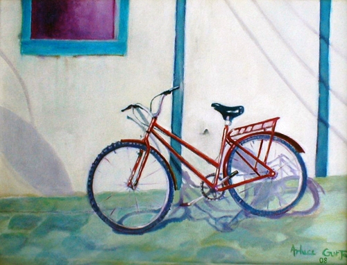 Baú de folha-de-flandres da avó no quarto de dormir.