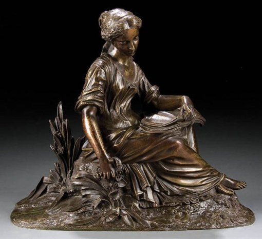 » A FRENCH BRONZE FIGURE OF A WOMAN READING, 19th c