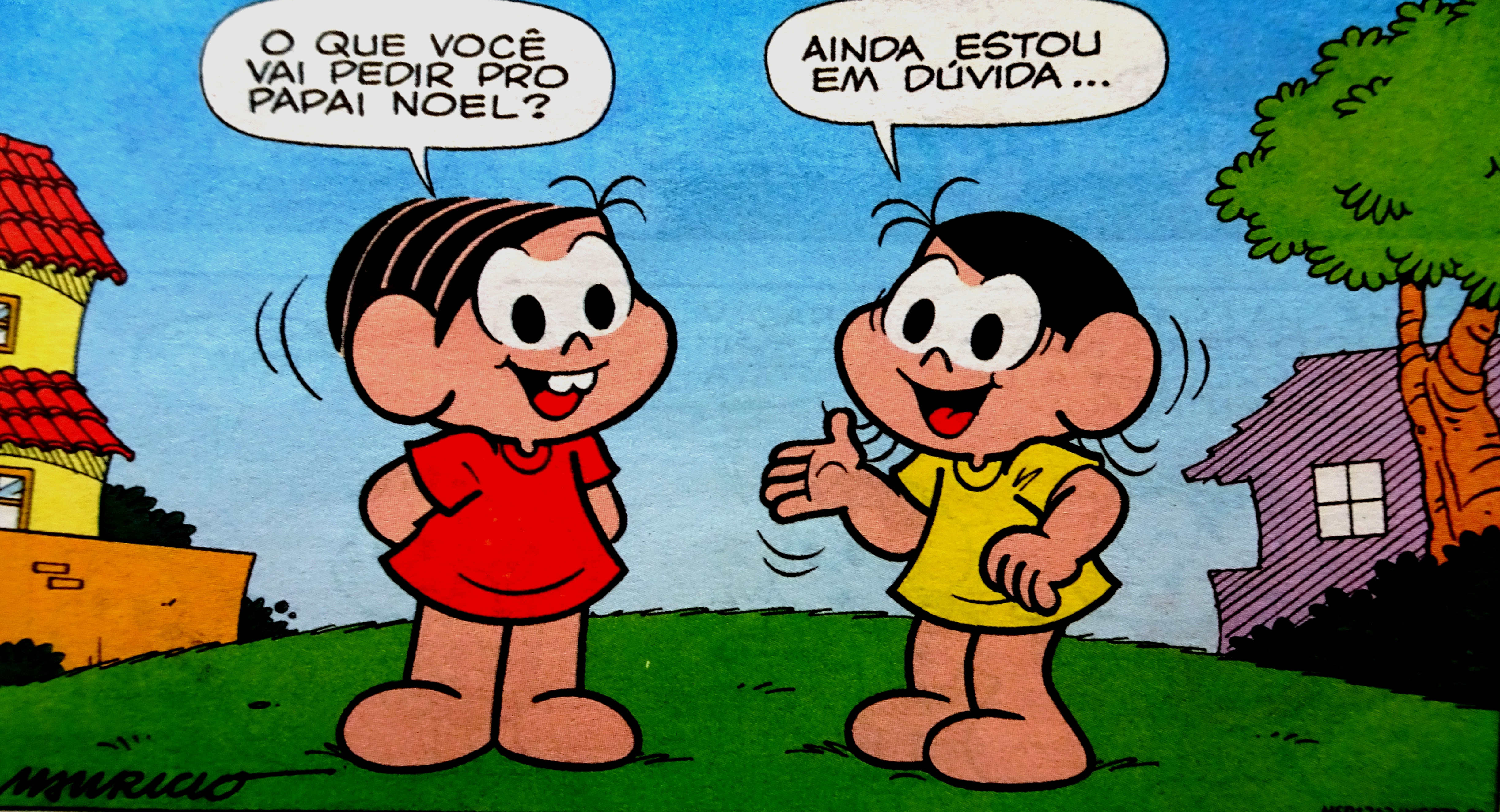 Monica e Magali sonham com os presentes de Natal, ilust. Mauricio de Sousa.