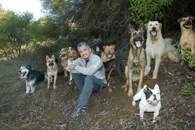 Cesar Milan, O Encantador de Cães, e alguns de seus cachorros.