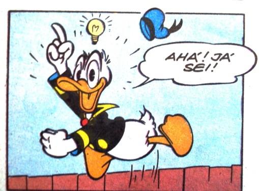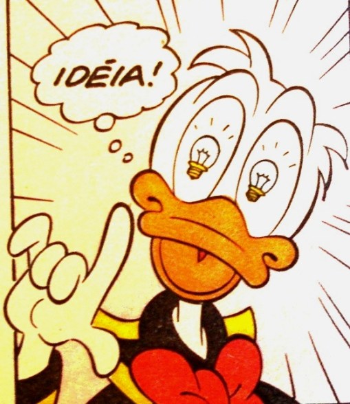 Pato Donald tem uma ideia brilhante! Ilustração Walt Disney.