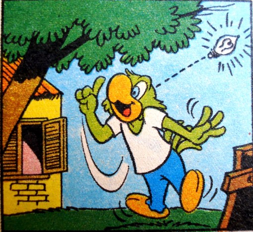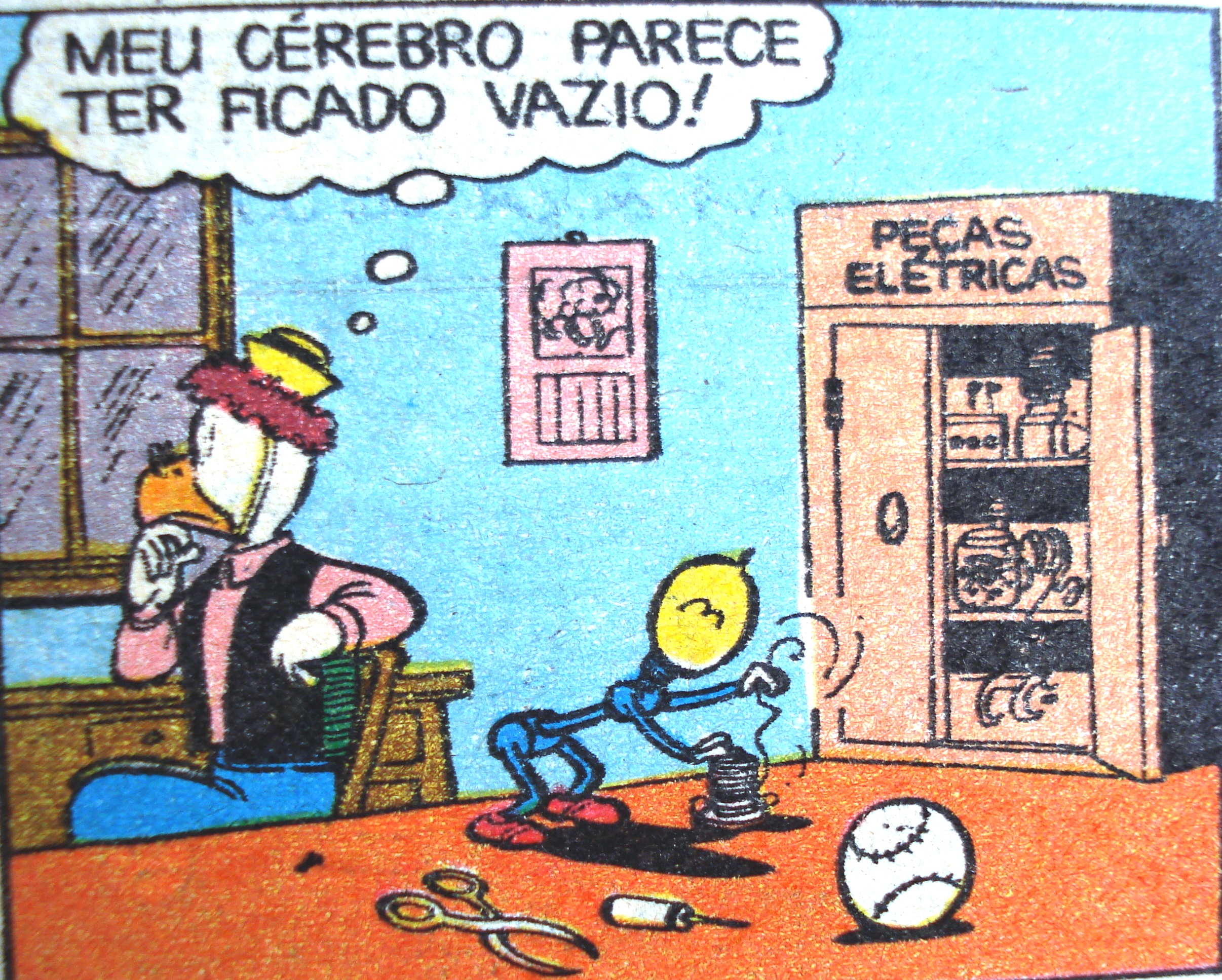 Quem percebeu que a ideia luminosa de Zé Carioca é representada por uma lâmpada na forma de pena? Ela poderia fazilmente, se colorida de verde, se inserir no seu topete. É ou não brilhante?