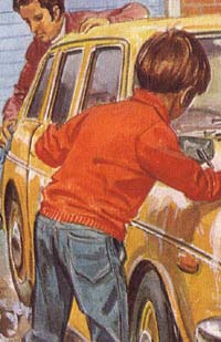 Ilustração de Paul Hesse. Anúncio para pneus FISK.