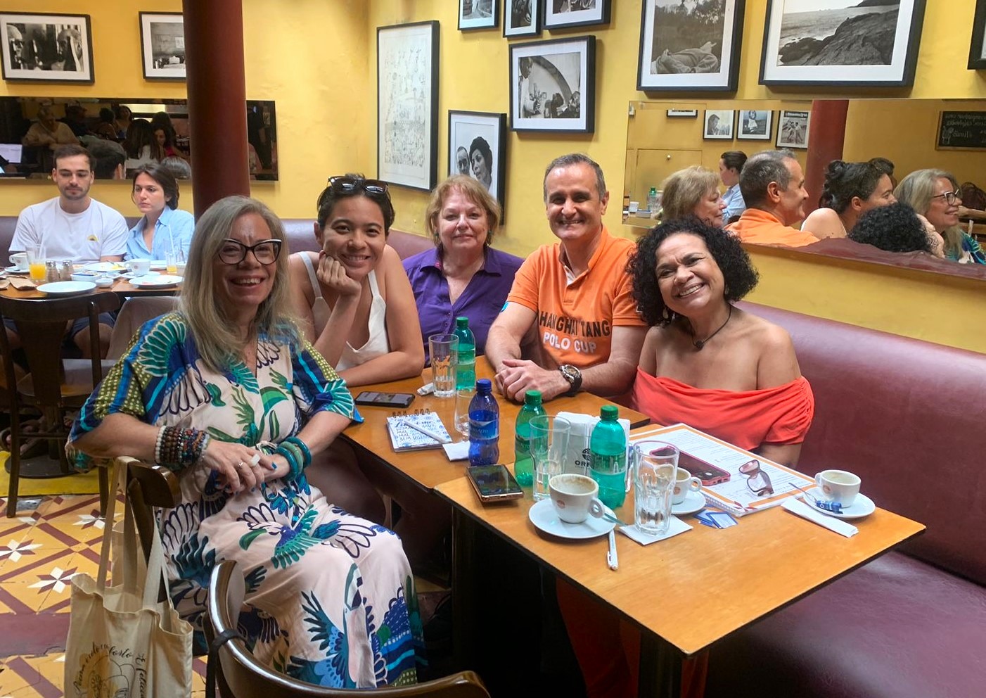 Uma manhã das letras: encontro de escritores Georgia Annes, Rubens Pierrotti, Carla Moura e eu, com a estrategista de marketing editorial, Dany Sakugawa, em visita ao Rio de Janeiro. Conversa deliciosa acompanhada de café e bolo de laranja no Café Severino, na Livraria Argumento no Leblon.